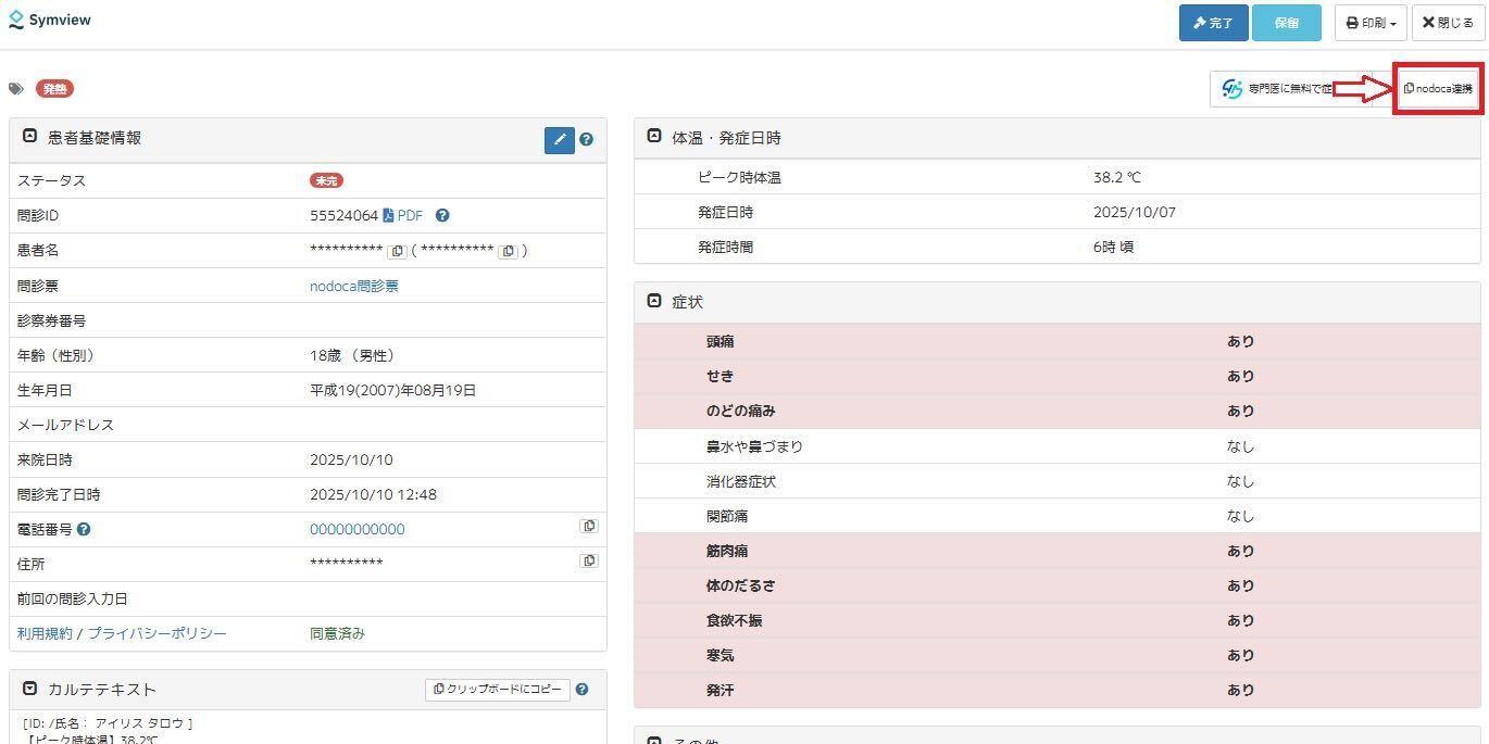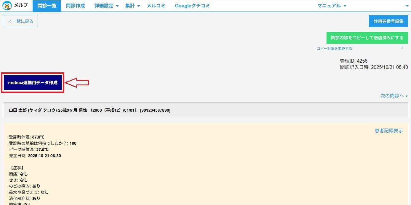 nodoca問診テンプレートはこちらからご確認いただけます。